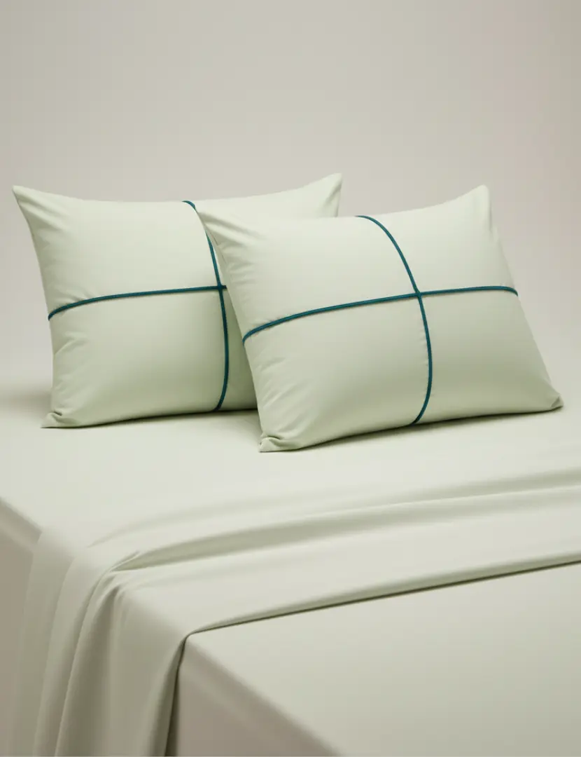 Our Linear Collection -Green and Teal Cross Pipping is made from 100% Cotton for breathable, everyday comfort. Featuring a clean minimalist line design, it suits any bedroom style. Pillow sizes Pillow size 28 x 17 inches Pillow size 30 x 20 inches a set includes 2 Pillow cases