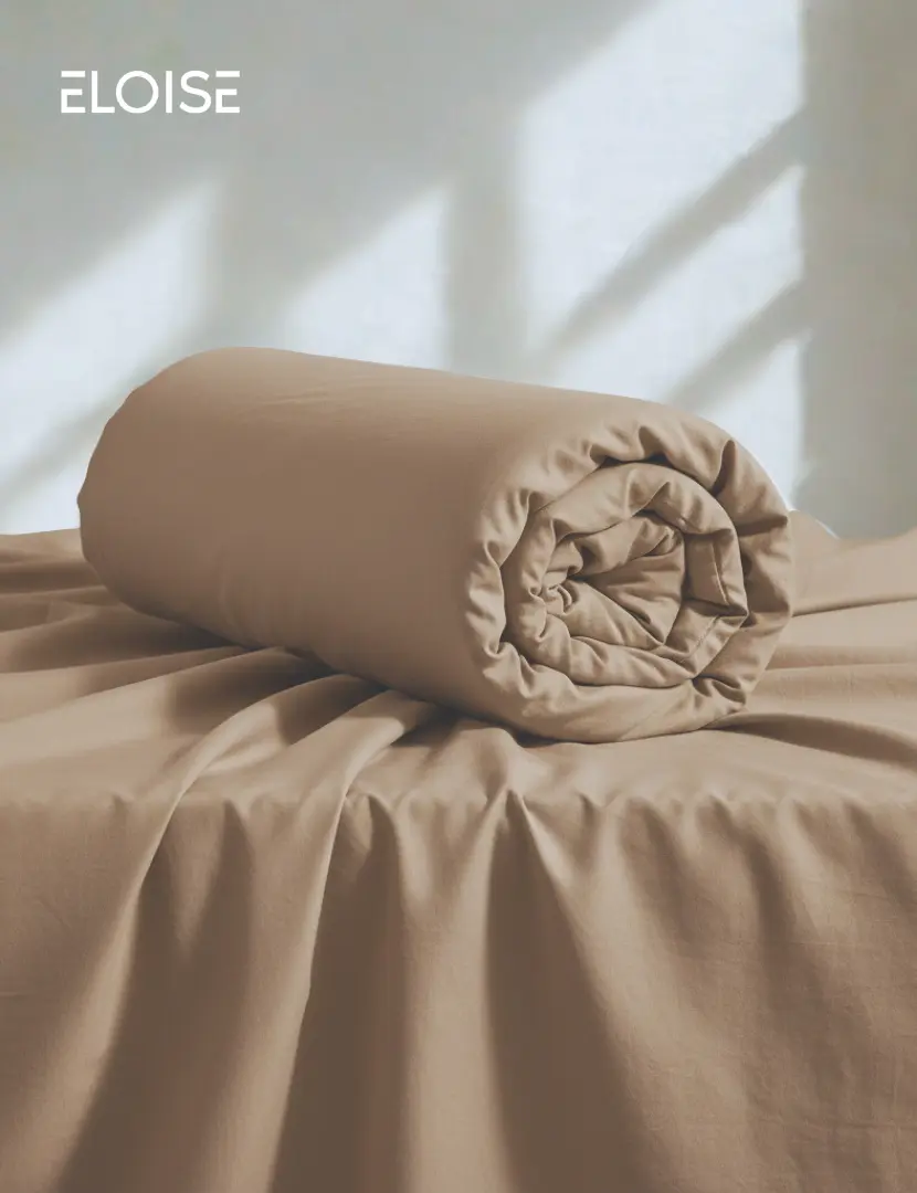 Our Eloise “Peanut Butter Duvet Cover” is made from 100% European Cotton. The color is Peanut Butter, a warm nude brown shade. This duvet cover comes with two pillow cases included.